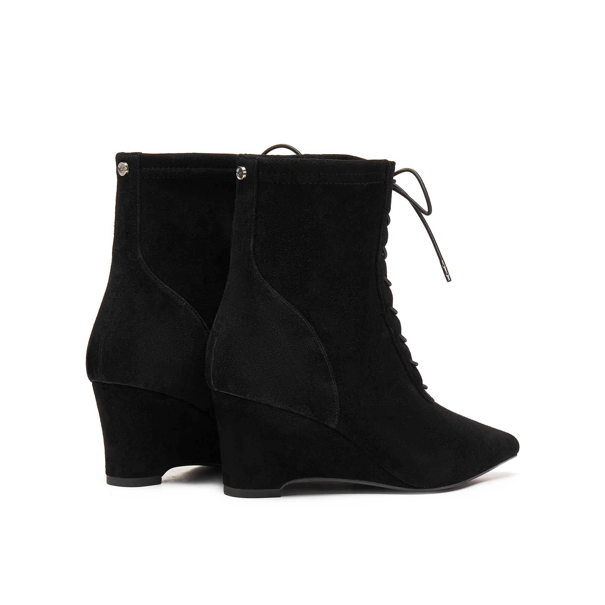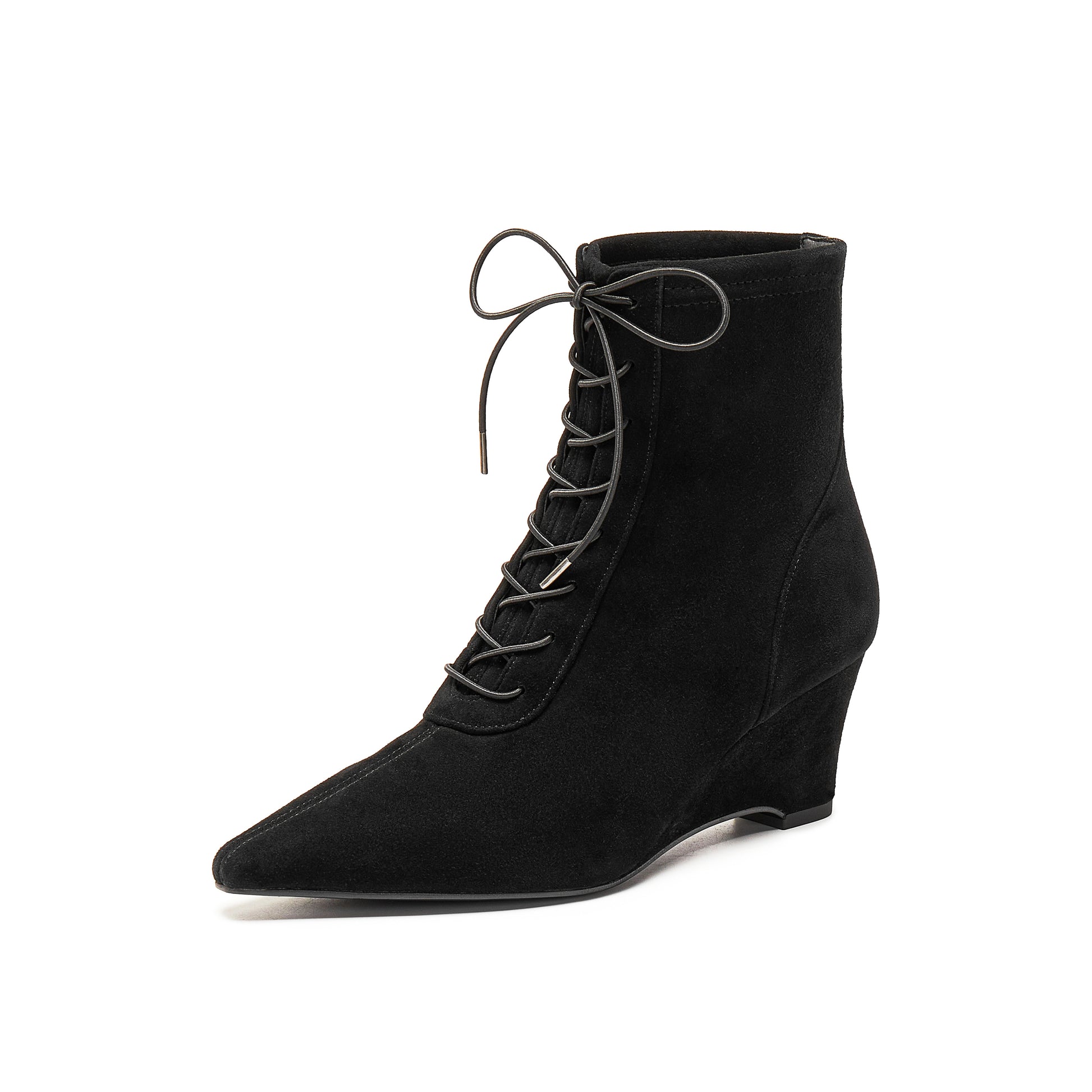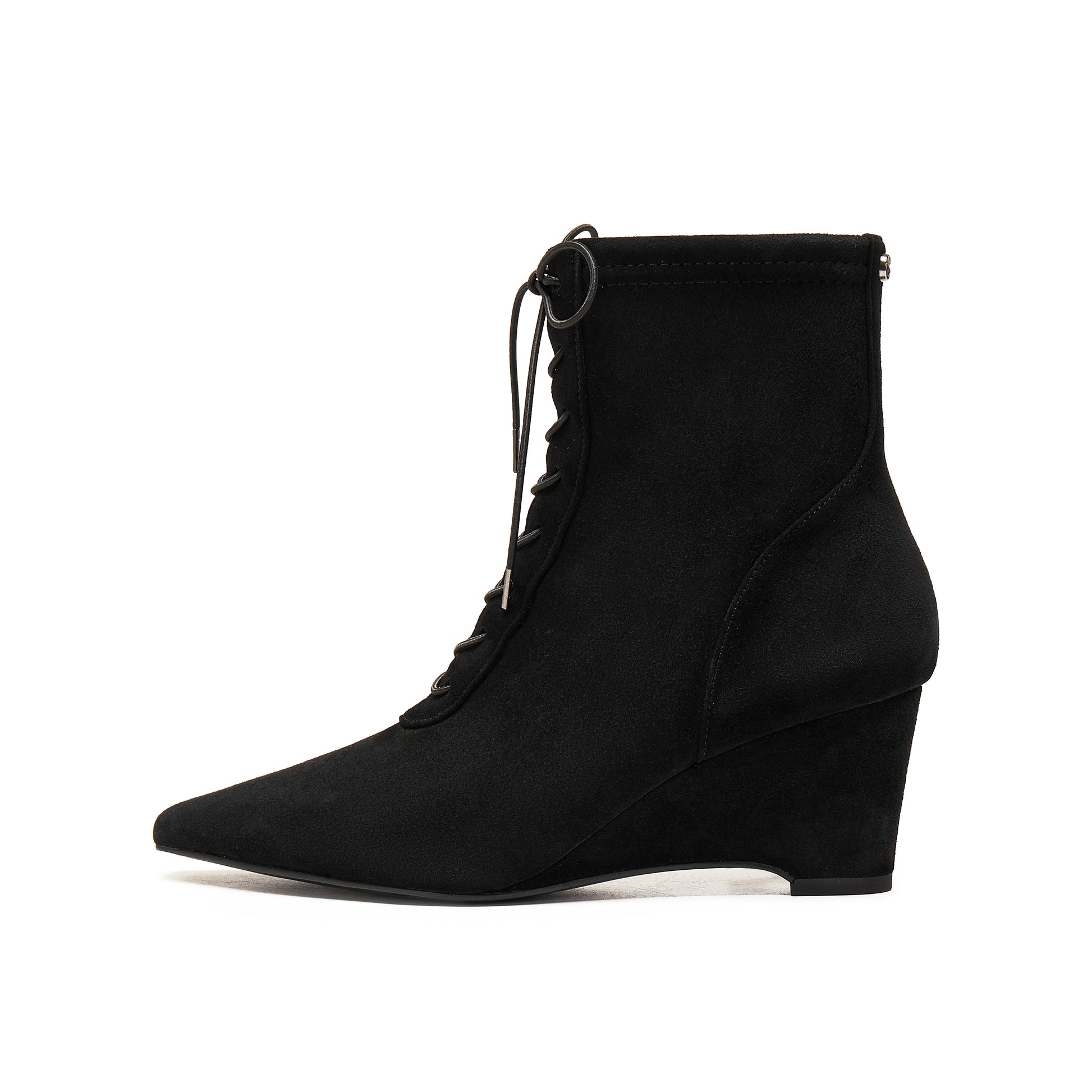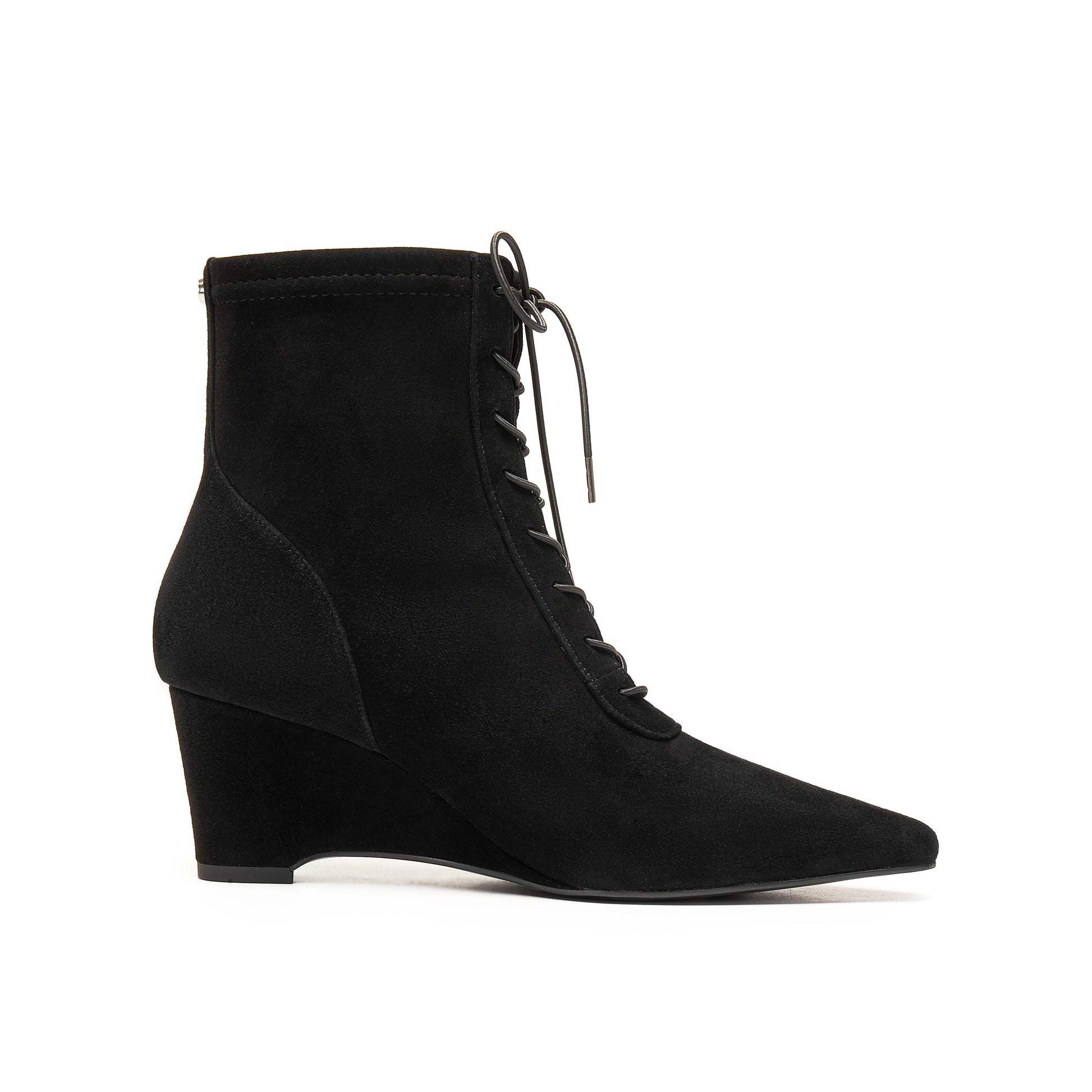 Stretch Kid Suede Wedge Short Boots